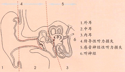 內耳中某些纖弱的毛細胞受損傷,不能將聲波轉變成電訊號,造成感音神經性聽力損失。有時聽神經中的神經通道受損傷,也妨礙訊號傳到大腦。這種類型的聽力損失也可能由于過量暴露于高嗓音或極響的音樂所造成。