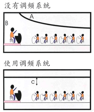 為了改善課堂的聆聽條件,有些學校采用了無線調頻系統,又稱為“聽覺訓練器”。它的工作原理與商用無線電臺類似:通過話筒接受教師說話的聲音,直接把它傳送到佩戴助聽器的學生耳中。