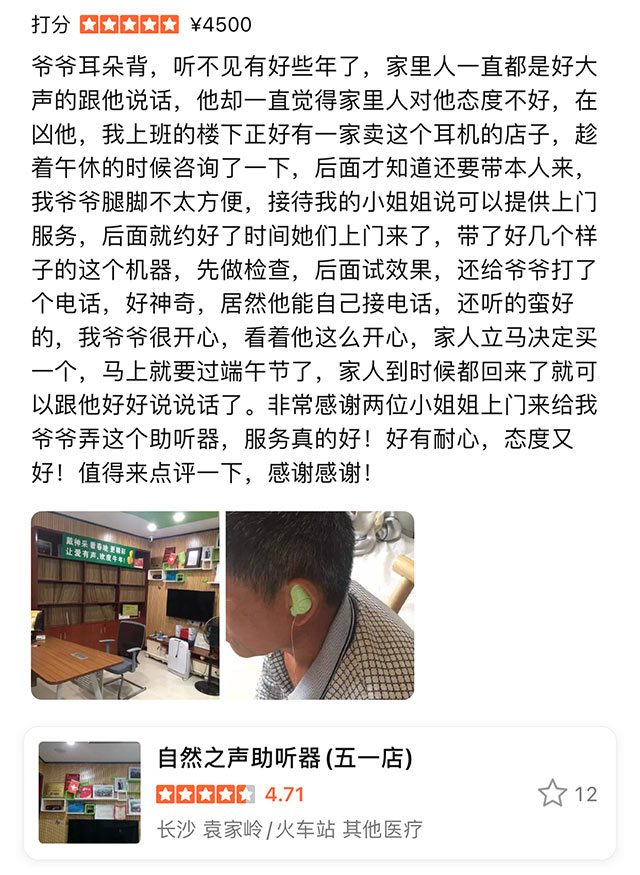 長沙用戶評價|感謝兩位驗配師上門為爺爺配助聽器