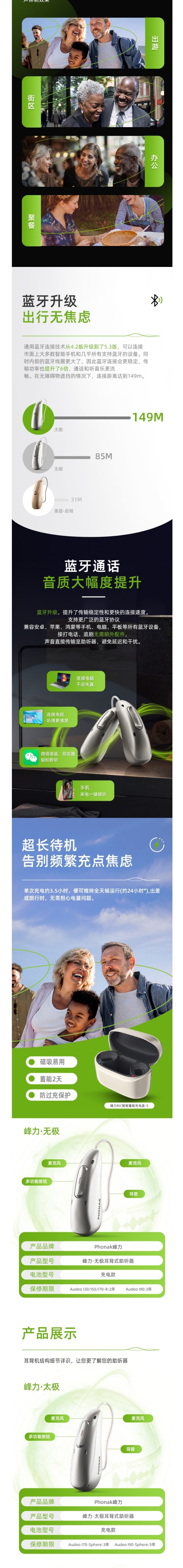 全新的峰力太極助聽器。它提供了無與倫比的降噪技術,幫助輕度至極重度聽力患者重獲新聲。它不僅有峰力超響應ERA芯片,還有全球峰力首款AI超算力DEEPSONIC芯片用于助聽器內部的聲音處理,帶給您360°環繞方向的言語清晰度,萬向悅言語,尊享超聽覺。